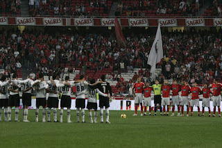 Os adeptos do Benfica entraram tarde no campo e isso fez despoletar os ânimos, que resultaram em actos claros de violência. Foram arremessadas pedras, very-light e os adeptos fugiram para o relvado.
